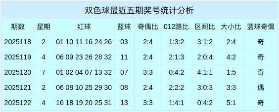 第2025123期双色球奖号统计表